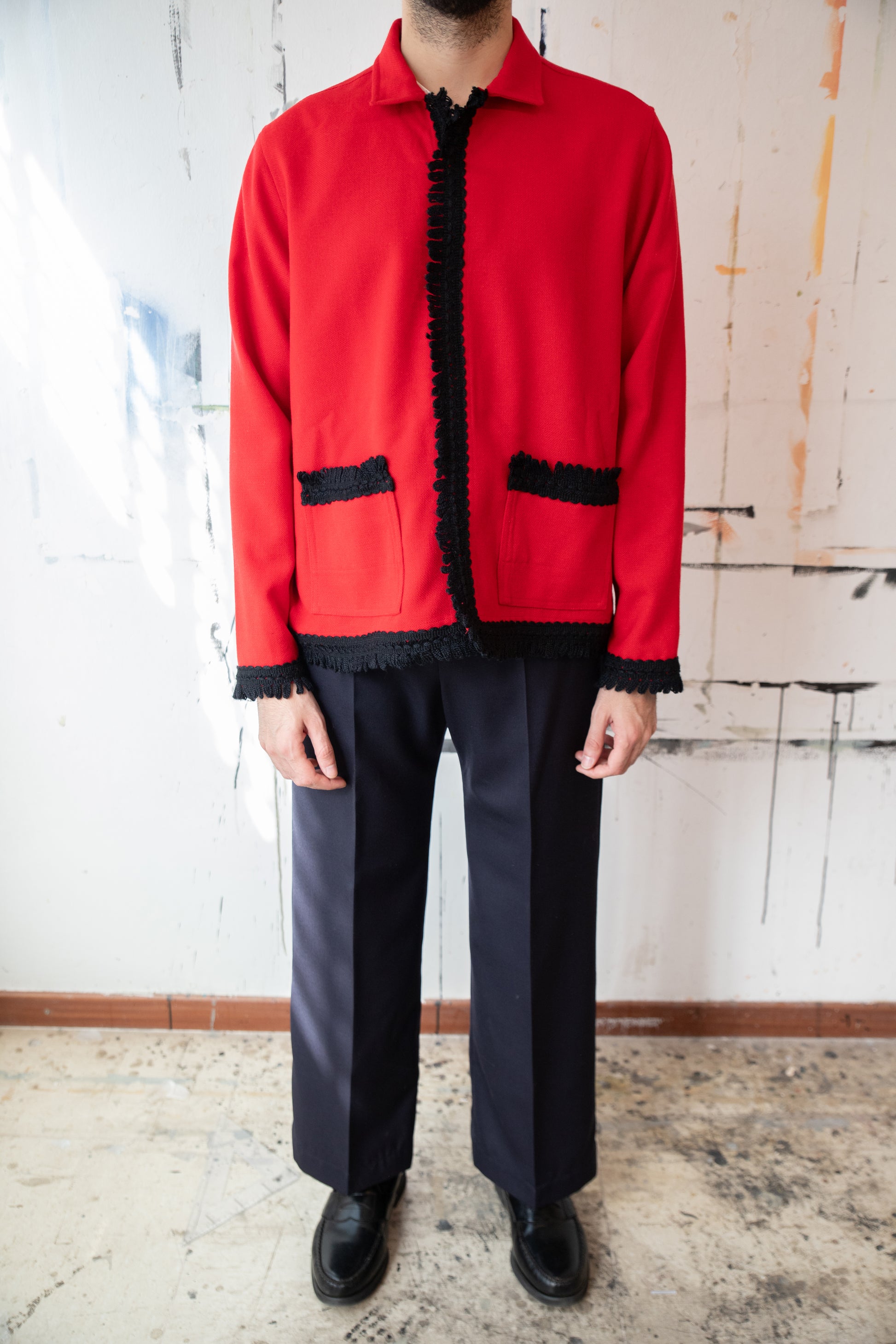 Made from an antique curtain fabric, this overshirt transforms a domestic textile into a versatile garment. The fabric’s original weight and pattern give the piece a distinctive presence, while its naturally aged character adds softness.