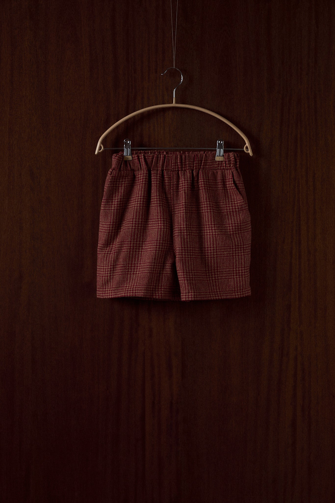 Made from carefully selected antique textiles, this short is a one-of-a-kind creation that celebrates craftsmanship and sustainability. The fabric, a vintage wool from the 60s.