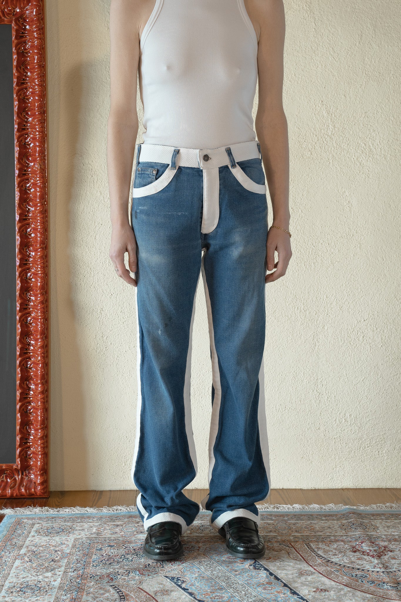 These pre-owned jeans, received in a variance of unwearable conditions, have been deconstructed and meticulously reconstructed to give each piece a new life. The process evokes our love for jeans, as a key piece in the everyday closet, providing a modern outlook on this classic staple.