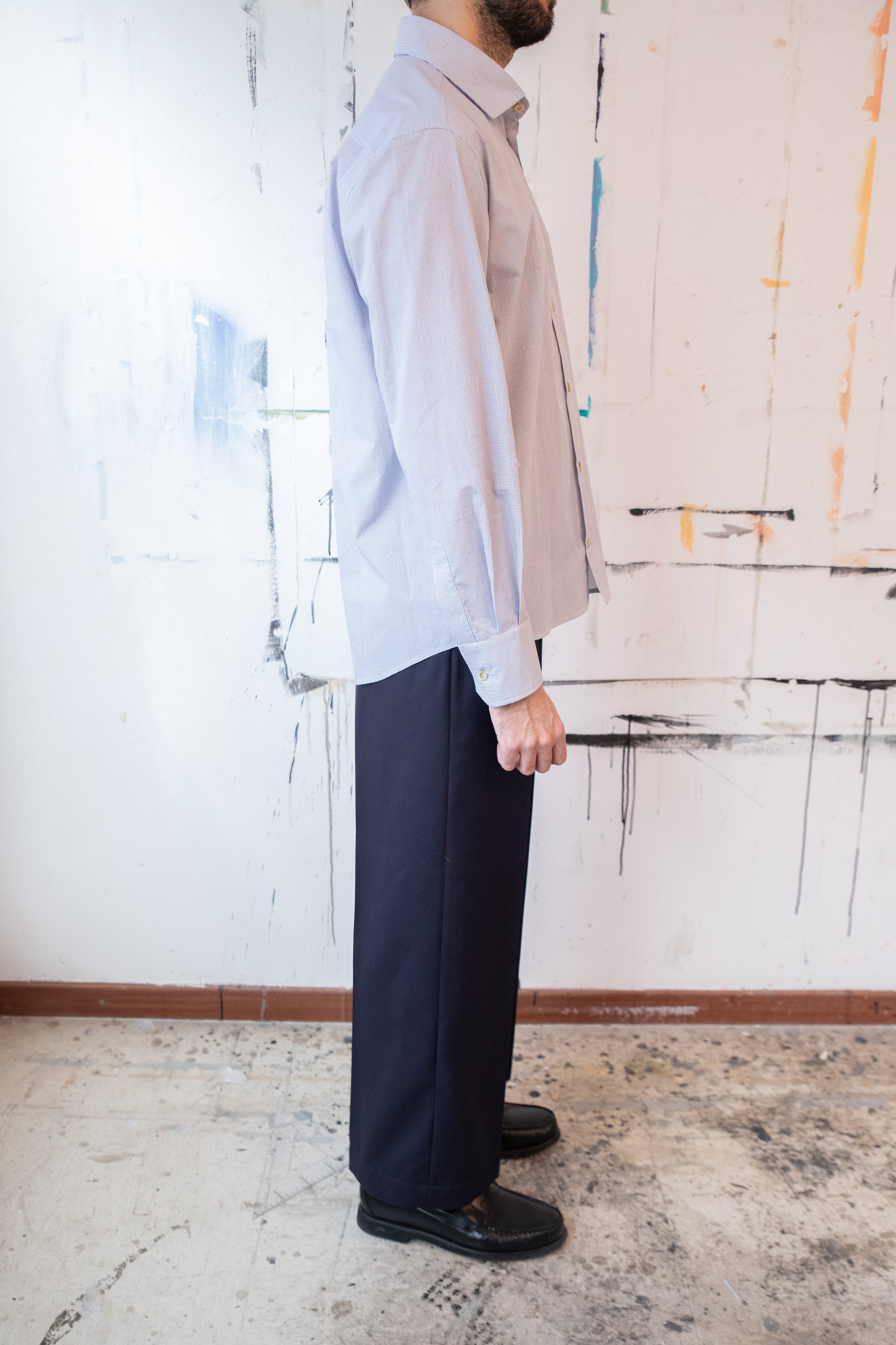 Made from a carefully sourced vintage check poplin found in Mercat de Verges. This shirt is a one-of-a-kind piece that celebrates the quiet character of aged textiles. The fabric was selected for its softness and timeless pattern, shaped into a relaxed, genderless silhouette.